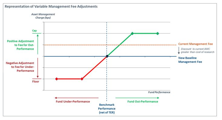 Fidelity International führt bei seinen aktiv gemanagten Aktienfonds für Kunden weltweit ein neues Gebührenmodell ein, das eine variable Managementgebühr umfasst. Dabei wird die bisherige jährliche Managementgebühr reduziert und um eine variable Managementgebühr ergänzt. Diese knüpft symmetrisch an die Wertentwicklung der Fonds an. Die variable Managementgebühr stellt faktisch einen gleitenden Tarif dar. Risiko und Rendite werden in beide Richtungen geteilt – ein Mechanismus, der auch als „Fulcrum Fee“ bezeichnet wird.