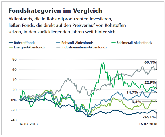 Sollten etwa Millionen Barrel täglich seitens des Iran wegfallen, wäre ein Defizit nicht mehr zu vermeiden. In einem solchen Fall hält Donora Ölpreise von 100 bis 150 US-Dollar pro Barrel für realistisch. Von den bisherigen Preisanstiegen des Öls profitieren Energie-Investments aber nur teilweise. Zwar spiegeln Aktienfonds, deren Universum aus Energiekonzernen und deren Dienstleistern besteht, den Aufwärtstrend mit zweistelligen Renditen auf Jahressicht wider. Längerfristig verharren die jährlichen Ergebnisse selbst der besten Fonds aber lediglich im niedrigen einstelligen Bereich. Noch düsterer sieht es bei Fonds aus, die direkt auf den Preisverlauf von Rohstoffen setzen. Morningstar weist für sämtliche Kategorien dieses Typs in den zurückliegenden fünf Jahren ein Minus aus.