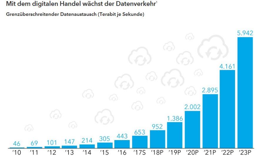 Die klassischen Außenhandels- und Wachstumskennziffern erfassen große Teile der digitalen Wirtschaft nicht. Auch entzieht sie sich oft den alten Handelsverträgen und Zollregimen. Ein Beispiel für Wachstum in diesem Bereich ist der grenzüberschreitende digitale Datenverkehr. Seit 2007 hat er sich vervierzigfacht, und in den nächsten sieben Jahren ist eine weitere Verdreizehnfachung zu erwarten. Handelsverträge dürften für Industrieunternehmen wichtiger sein als für New-Economy-Firmen.
