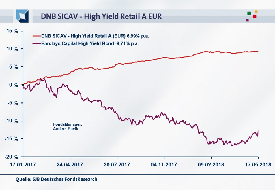 Viele Gründe sprechen derzeit für ein Investment in den skandinavischen High-Yield-Markt, wo Investoren unter Rendite-Risiko-Gesichtspunkten eine attraktive Kombination erhalten. Der wieder anziehende Ölpreis und die Stabilisierung im Schifffahrtssektor bilden einen positiven Hintergrund für die vergleichsweise stabilen Hochzinsprodukte, die auch in der fortgesetzten Niedrigzinsphase attraktive Renditen bieten. Investoren sollten die Kernkompetenzen des norwegischen DNB Fixed Income-Teams nutzen, das in seinem Heimatmarkt Skandinavien nachweislich zu den erfolgreichsten Asset Managern zählt – nicht umsonst ist der DNB SICAV High Yield einer der Top-Fonds in seiner Vergleichsgruppe!