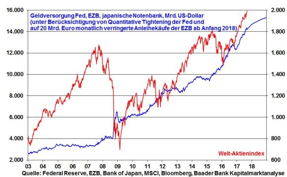 Globale Geldversorgung der Notenbanken (EZB, Fed und Bank of Japan) und Welt-Aktienmarkt