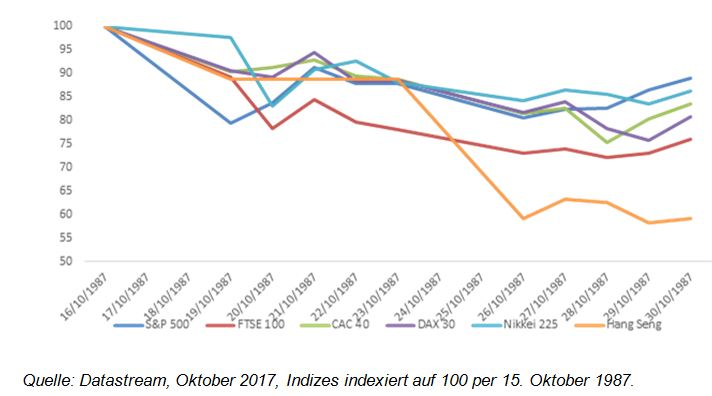 Am 19. Oktober jährt sich zum 30. Mal der Schwarze Montag. An ihm gingen 1987 Jahren die Märkte rund um den Globus in die Knie. Was löste den Börsen-Crash damals aus und was haben die Märkte gelernt?