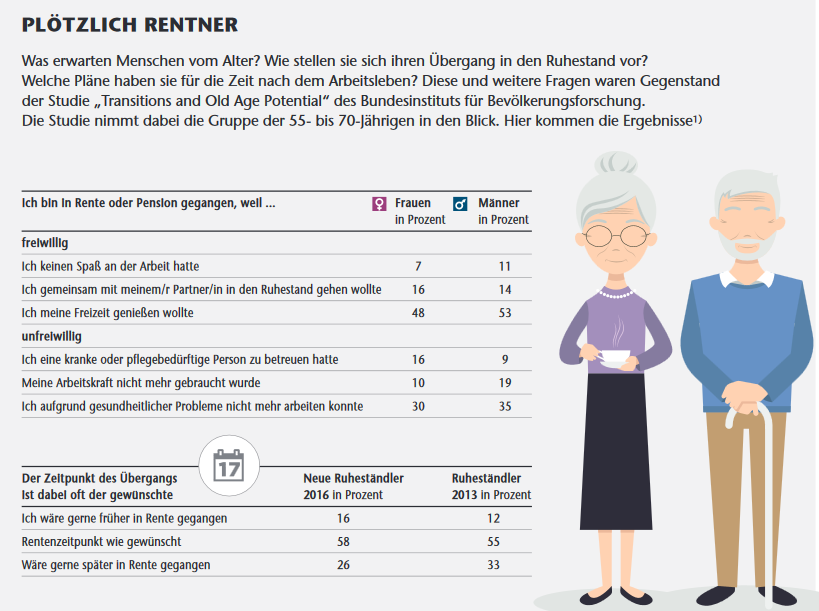 Damit liegt die Rentenbezugsdauer 3,6 Jahre höher als noch vor 20 Jahren. Gleichzeitig wechseln ältere Menschen nun unter besseren Voraussetzungen in den Ruhestand als früher: Sie sind gesünder, fitter und haben oft ein wenig Geld auf der hohen Kante.