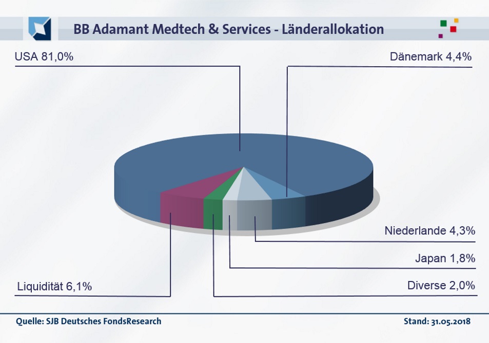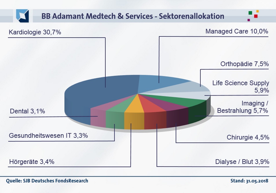 Der BB Adamant Medtech & Services hat sich die Erwirtschaftung eines langfristig attraktiven Kapitalwachstums zum Ziel gesetzt und investiert in Aktien von Unternehmen des Medizinaltechnik- und Gesundheitsdienstleistungssektors weltweit. Der Schwerpunkt liegt auf Unternehmen mit mittlerer und großer Marktkapitalisierung, die bereits über ein reiferes Produktportfolio verfügen. In seiner Titelauswahl wendet das FondsManagerduo Blum/Fritsch die fundamentale Unternehmensanalyse an, wobei insbesondere der medizinische Nutzen, das Sparpotenzial für das Gesundheitswesen sowie das erwartete Marktpotenzial der entsprechenden Produkte untersucht werden. Ein global verankertes Experten-Netzwerk, das sich aus Beratern der Wissenschaft und Industrie zusammensetzt, unterstützt das FondsManagement in seiner Meinungsbildung und Anlageentscheidung. Die Selektion der Einzelaktien innerhalb des Portfolios erfolgt benchmarkunabhängig auf Basis einer gründlichen Bottom-up-Analyse der Unternehmen. FondsManager Fritsch betont, dass eine ganze Reihe von Entwicklungen dazu führen, dass der Medizintechniksektor langfristig aussichtsreich bleibe: So sorge der Strukturwandel im Gesundheitswesen für erhebliches Wachstumspotenzial, da der Trend zu einer dezentralen Leistungserbringung neue Produkte und Dienstleistungen erfordere. Insgesamt würden die positiven Wachstumstrends in der Branche verbunden mit der stabilen Nachfrage nach Medizintechnikprodukten dafür sorgen, dass die Unternehmen auch unter dem Aspekt hoher Dividenden- und Free-Cash-Flow-Renditen attraktiv bleiben. Die jüngsten Kontakte des Anlageteams mit dem Management diverser Portfoliounternehmen bestätigen die positive Grundstimmung in der Branche. Die kommenden Unternehmensergebnisse des zweiten Quartals dürften erfreulich ausfallen, zudem wurde in den Gesprächen deutlich, dass eine erfolgreiche digitale Strategie zu einem der wichtigsten Werttreiber für den nachhaltigen Erfolg im Healthcare-Sektor geworden ist. Wie ist das aktiv verwaltete FondsPortfolio des BB Medtech-Fonds im Einzelnen strukturiert?