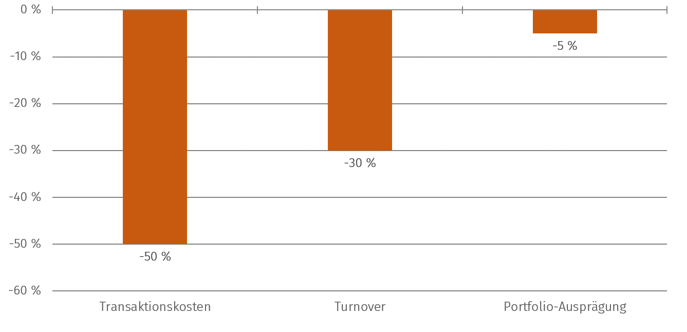 Transaktionskosten können das Ergebnis in der Tat erheblich beeinflussen, denn um die gesuchte Portfolio-Ausprägung aufrecht zu erhalten, werden Portfolien systematischer Anlagestrategien durch regelmäßiges Umschichten neu ausgerichtet.