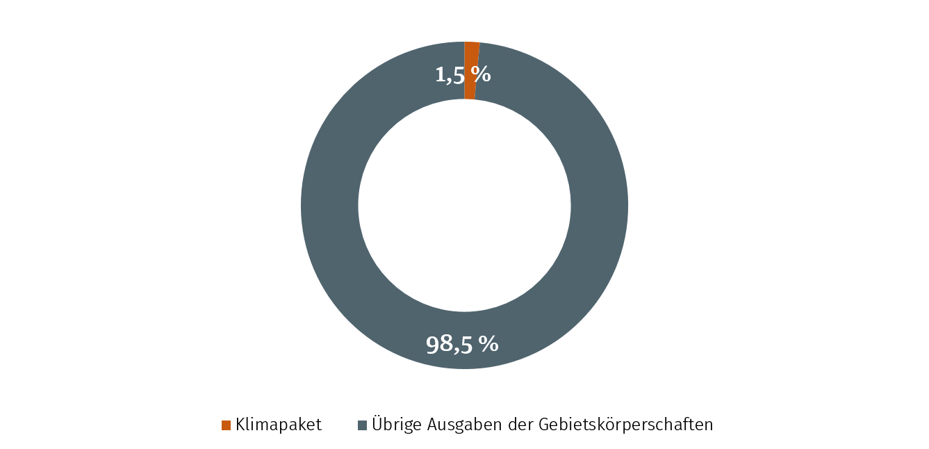 Glücklicherweise wird auch hier nicht so heiß gegessen wie gekocht wird. Das hängt zum einen damit zusammen, dass das Klimapaket der Regierung doch insgesamt sehr bescheiden ist. Es beläuft sich über vier Jahre aufsummiert auf EUR 54 Milliarden. Das sind nur 1,5 % der Ausgaben der Gebietskörperschaften in dieser Zeit (Grafik) und sogar nur 0,4 % des Bruttoinlandsproduktes. Damit wird der Gegenwartskonsum nicht wirklich eingeschränkt. Es bleibt noch Platz für ein finanzpolitisches Ankurbelungsprogramm, das sich nicht auf vier Jahre, sondern auf einen kurzen Zeitraum von vielleicht sechs Monaten bezieht, in denen die Nachfrage angekurbelt wird.