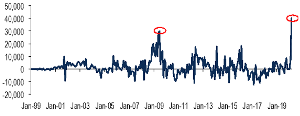 Viel ist über die beispiellose finanzielle Unterstützung schon geschrieben worden, die von Regierungen und Zentralbanken weltweit durchgeführt wird. Das jüngste Beispiel war die Ankündigung der Federal Reserve, im Rahmen neuer Kreditfazilitäten in Höhe von USD 2,3 Billionen mit dem Kauf von High Yield-ETFs zu beginnen. Dies führte zum historisch besten Tag für USD High Yield-Indizes in ihrer Geschichte (+4 % am Tag und über 7 % in der Woche) sowie zu großen Zuflüssen in die Anlageklasse. Dies kommt zu den bereits angekündigten Unterstützungsmaßnahmen hinzu: Das EUR 750 Mrd. umfassende Pandemie-Notkaufprogramm der EZB, die Unterstützung der EU in Höhe von EUR 500 Mrd. durch das ESM, die rekordverdächtige Liquiditätsbereitstellung der Fed und die direkte Unterstützung für in Schwierigkeiten geratene Unternehmen in allen Ländern, wobei Deutschland und das Vereinigte Königreich bei der Unterstützung in Prozent des BIP führend sind. All dies dürfte dazu beitragen, die gegenwärtige Krise zu dämpfen und die Spreads zu stützen.