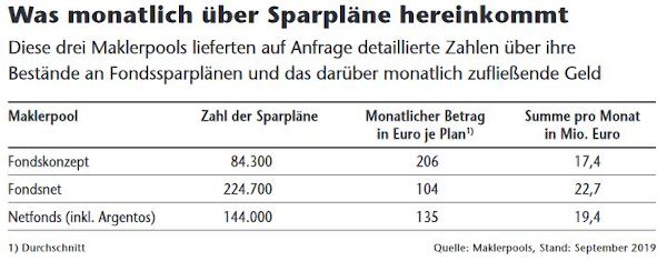 Zuflüsse, die berechenbar und ziemlich stetig sind. Es ist Geld, das Fondsmanager gut handhaben können und deshalb mögen. Sie können sich darauf einstellen und ihre Strategie danach ausrichten. Ganz im Gegensatz zu hohen und sporadischen Zu- und Abflüssen, die entstehen, wenn eine Vertriebsorganisation mal wieder im großen Stil einen Fonds gegen einen anderen austauscht.