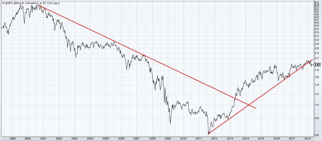 Chart 2: Verhältnis Aktienmarkt zu Goldpreis