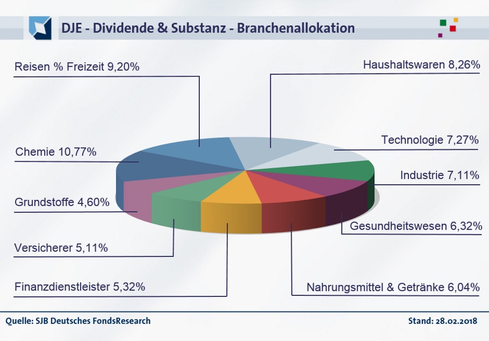 Der DJE – Dividende & Substanz verfolgt die Zielsetzung, für seine FondsAnleger einen mittel- bis langfristigen Wertzuwachs des investierten Vermögens zu erzielen, wobei die Wertsteigerung überwiegend aus Dividendenerträgen und Aktienkurssteigerungen generiert werden soll. FondsManager Dr. Jan Ehrhardt investiert überwiegend in Aktien von Unternehmen, die eine besondere Substanzstärke, eine solide Finanzbasis, hohe stabile Ausschüttungen und eine vergleichsweise günstige Bewertung aufweisen. Diese Value-Aktien werden aus einem weltweiten Anlageuniversum herausgefiltert, wobei der Schwerpunkt auf europäischen und asiatischen Aktien liegt. Prinzipiell geschieht die Zusammenstellung des Portfolios benchmarkunabhängig und frei von jeglichen Sektoren- und Ländervorgaben. Auch mit Blick auf die Marktkapitalisierung ist FondsManager Ehrhardt in seinen Investmententscheidungen frei. Bei der Auswahl der Einzelwerte werden die Unternehmen nach quantitativen und qualitativen Kriterien analysiert. Dabei stehen für Ehrhardt nicht nur die Ertragskennzahlen im Vordergrund, sondern er nutzt ein umfassendes Spektrum an Bilanzkennziffern, welche für die Auswahl substanzstarker Unternehmen von entscheidender Bedeutung sind. Ehrhardt charakterisiert seine Anlagestrategie als einen aktiven Value-Ansatz, der sich auf die Werthaltigkeit und die Fundamentaldaten der Unternehmen konzentriert. Von der Möglichkeit, auch fest und variabel verzinsliche Wertpapiere ins Portfolio aufzunehmen, macht er derzeit keinen Gebrauch: 90,94 Prozent des FondsVermögens sind in Aktien angelegt, der Kassenbestand ist per Ende Februar mit 9,06 Prozent recht hoch. Wie ist das Portfolio des Dividendenfonds im Detail zusammengesetzt?