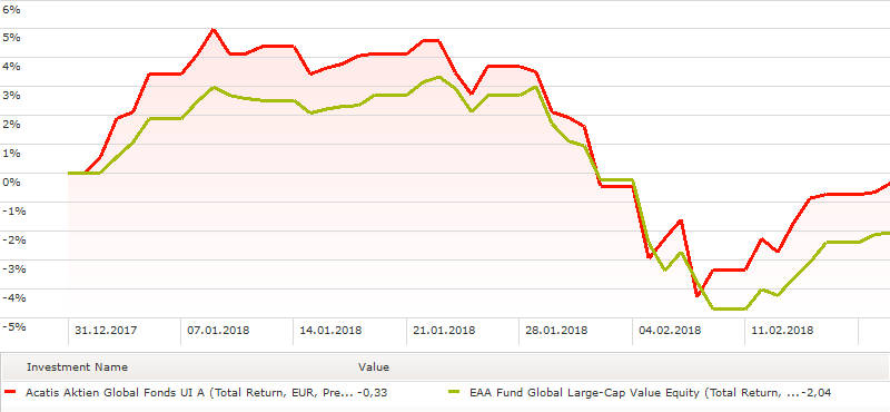 Wertentwicklung seit Jahresbeginn mit Morningstar-Vergleichsgruppe „Aktienfonds Global Standardwerte Value“ (Quelle: Morningstar)