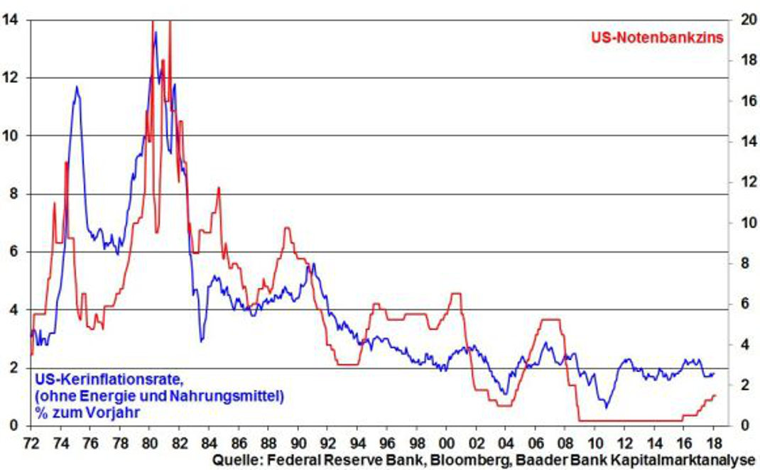 Grafik: US-Kerninflationsrate und US-Notenbankzins