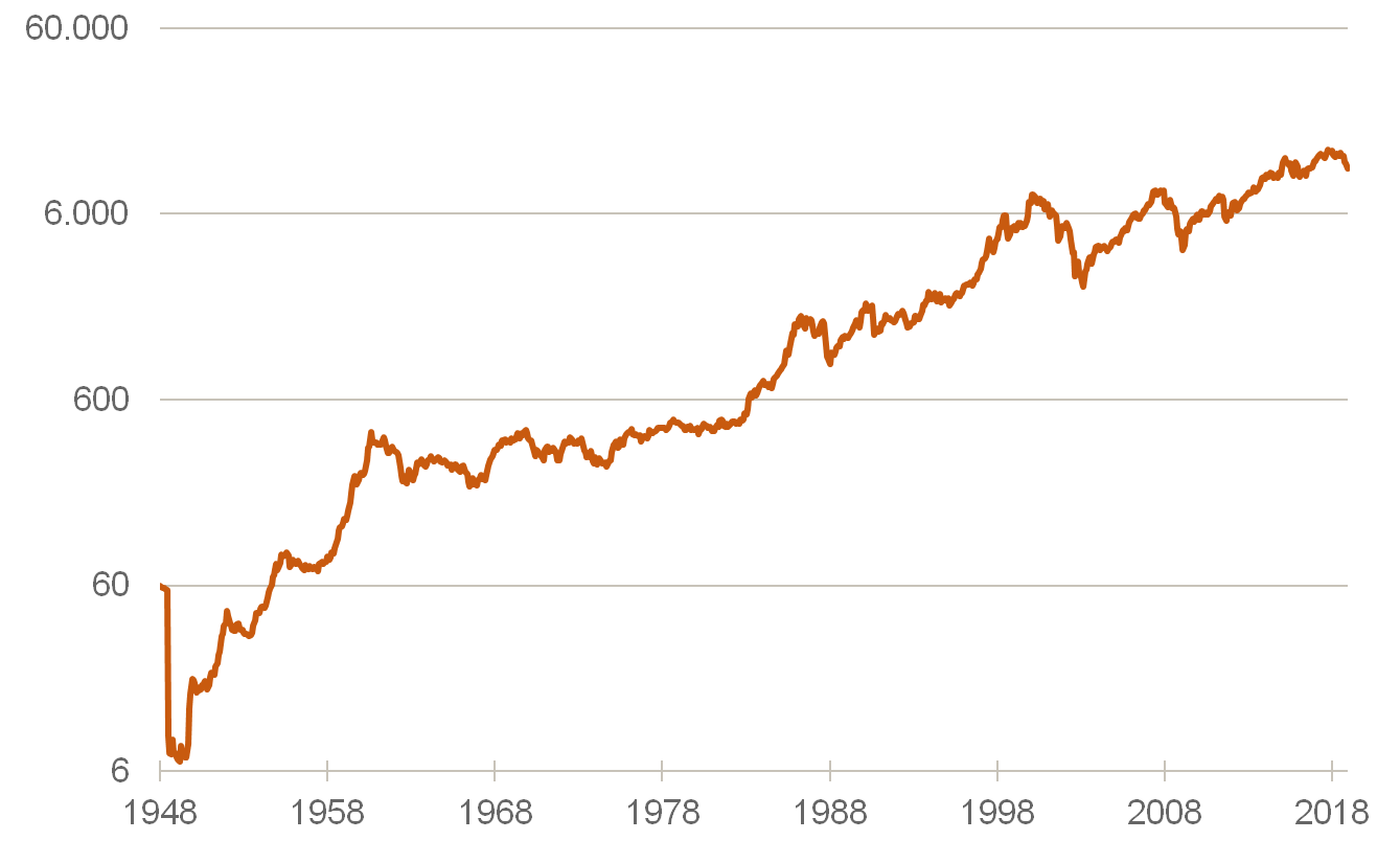 Deutscher Aktienindex in den vergangenen 70 Jahren: