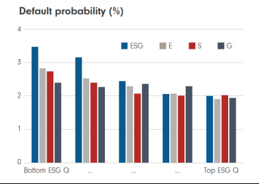 Unternehmen mit niedrigen ESG-Werten weisen höhere Ausfallwahrscheinlichkeiten auf. Governance-Faktor hat den stärksten Einfluss.