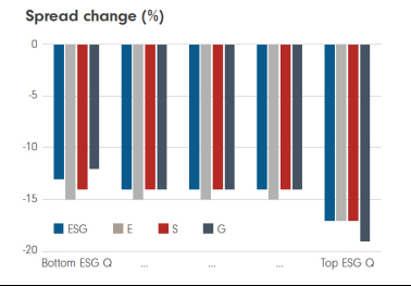 Doch nicht nur die Ausfallwahrscheinlichkeit ist bei Gesellschaften mit höheren ESG-Werten niedriger, sondern auch die Spanne zwischen Geld- und Briefkurs der Anleihen. Konkret bedeutet dies für Anleiheinvestoren niedrigere Handelskosten, was sich positiv auf die Wertentwicklung des Portfolios auswirkt.