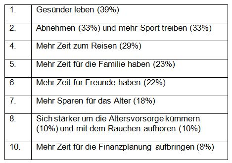 Ranking: Top 10 der guten Vorsätze für das neue Jahr:
