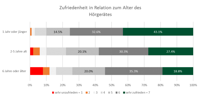 Zunehmende Akzeptanz: Die gestiegene Akzeptanz von Hörgeräten ist neben der demographischen Entwicklung ein ganz wesentlicher Treiber des Wachstums des Marktes für Hörgeräte. Hörgeräte wurden ursprünglich – auch aufgrund ihrer Größe und der damit verbundenen Sichtbarkeit, mit Alter und Behinderung assoziiert und stigmatisiert. Jedoch hat zwischenzeitlich die Miniaturisierung von Hörgeräten und ihre Konnektivität mit (Mobil-) Telefonen, Fernsehern und ähnlichem hier einen entscheidenden Beitrag geleistet, eine Bevölkerungsgruppe zu erreichen, die zuvor Hörgeräten skeptisch gegenüberstand. So hat sich einer US-Studie zufolge die Adoptionsrate z.B. in der in Gruppe der 35- bis 44-jährigen über einen Zeitraum von 30 Jahren (1984 bis 2014) von ca. 6% auf 14,3% mehr als verdoppelt. Auch die Zufriedenheit mit Hörgeräten hat spürbar zugenommen. Mehr als 40% der Nutzer waren mit einem neuen Hörgerät (nicht älter als ein Jahr) sehr zufrieden, doppelt so viele wie bei Nutzer, die ein mehr als 6 Jahre altes Hörgerät verwenden.