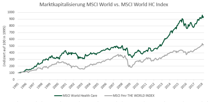 So hat sich über die letzten zwei Jahrzehnte die Marktkapitalisierung der im MSCI World Health Care Index zusammengefassten Gesundheitsunternehmen verneunfacht (9,3x), währenddessen sie sich für den breiten Marktindex nur verfünffachte (5,2x). Neben verschiedenen, langanhaltenden Wachstumstreibern des Gesundheitssektors trägt sicherlich auch die Innovationskraft der Unternehmen der Gesundheitsbranche zu dieser aus Investorensicht sehr positiven Entwicklung bei.