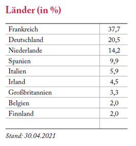 Die Länderallokation sowie Top Ten Aktien sind per 30.04.2021: