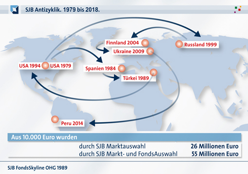 Dieser Erfolg fällt nicht vom Himmel, sondern will professionell erarbeitet werden. Die SJB hat als FondsVerwalter fortlaufend 80 Branchen, 76 Länder und rund 8.000 Investmentfonds von 220 Kapitalanlagegesellschaften auf dem Schirm des Echolots. Die SJB weiß, welche Märkte und welche Fonds wann Signal zum Auftauchen geben und welche aktuellen Marktbedingungen diese Aufwärtsbewegung begünstigen.